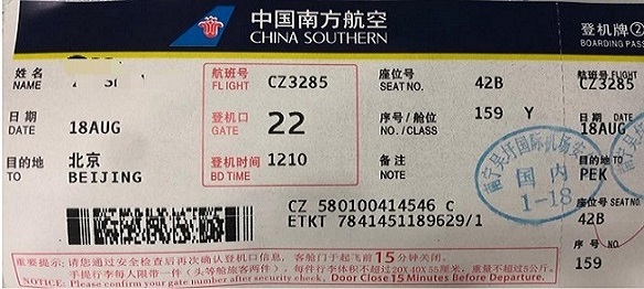 南宁飞北京登机牌: