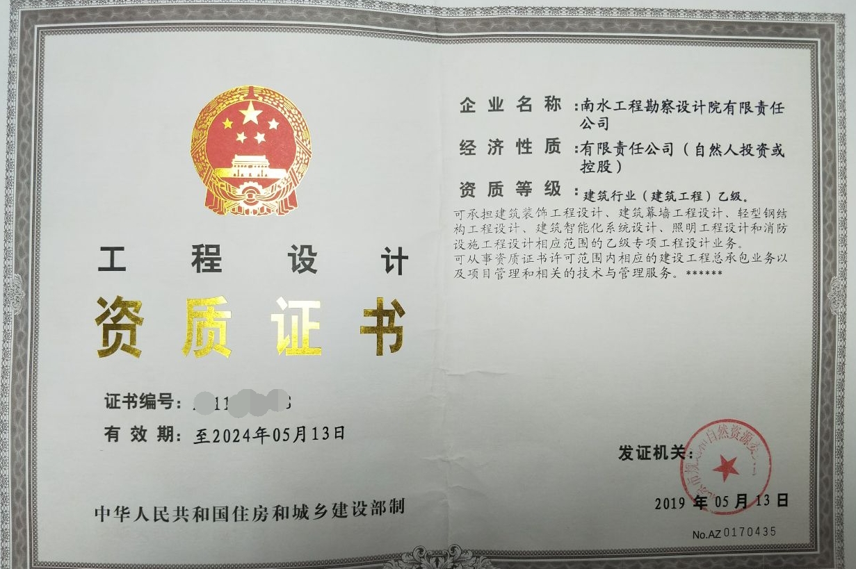 2018年初,总公司与北京四分公司负责人共同出资,经过半年时间的努力,终于在首都北京成立了南水工程勘察设计院有限责任公司,并于2019年初拿到了建筑设计资质证书,现该公司已正式挂牌运营。