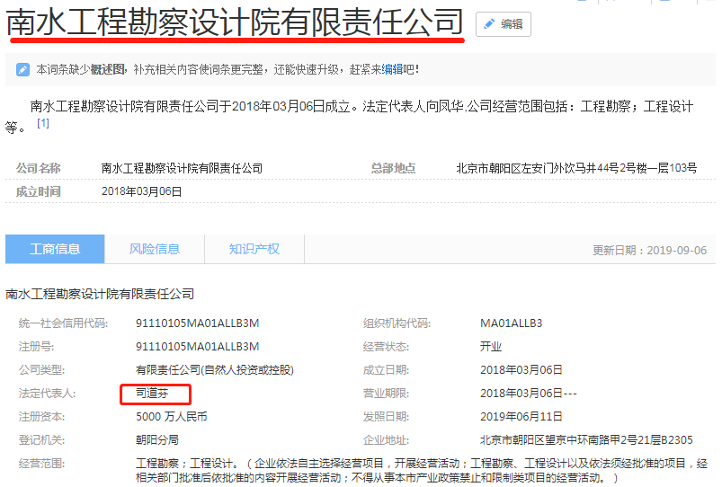 北京四分公司负责人也是南水设计院法人: