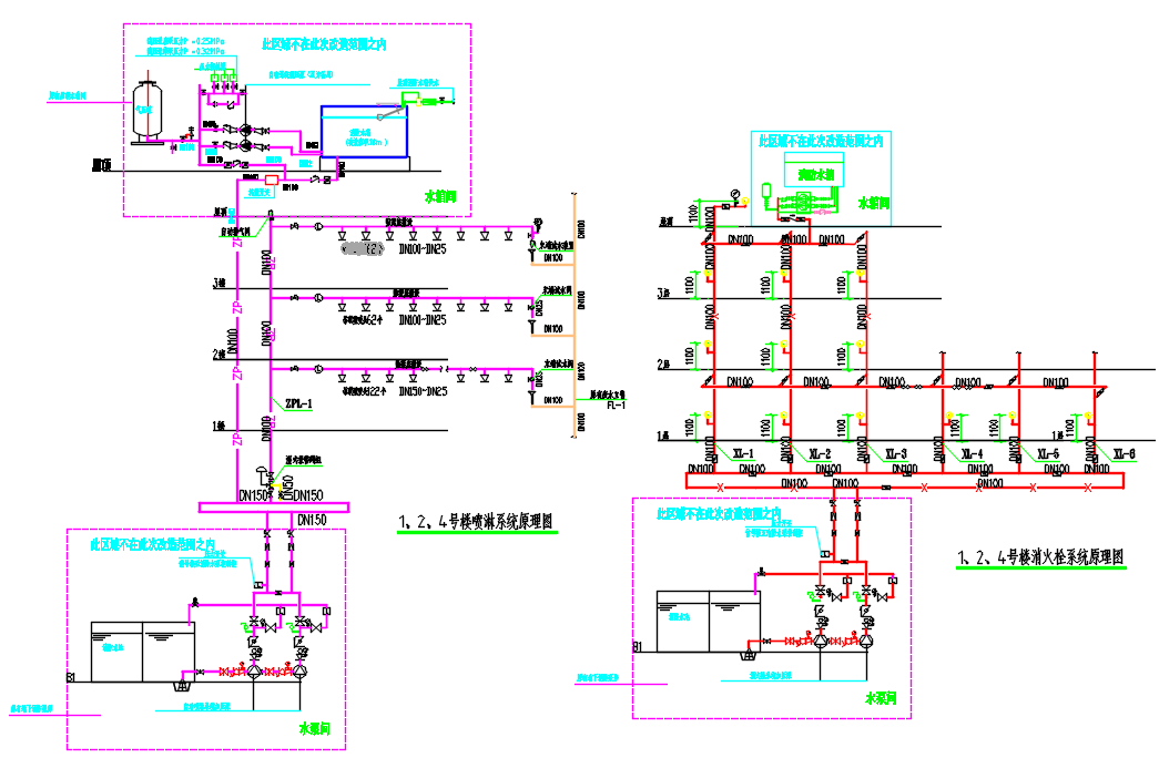 消火栓、喷淋系统图: