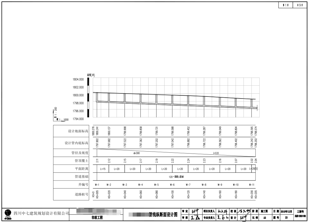 2018年11月,公司通过招投标中标甘肃省某污水管道施工图设计项目。本项目为甘肃省某城镇污水管网一期工程,管网全长6.07公里,共分7条支路污水管道,管径为 dn400-dn1200mm,管材为钢筋混凝土排水管。