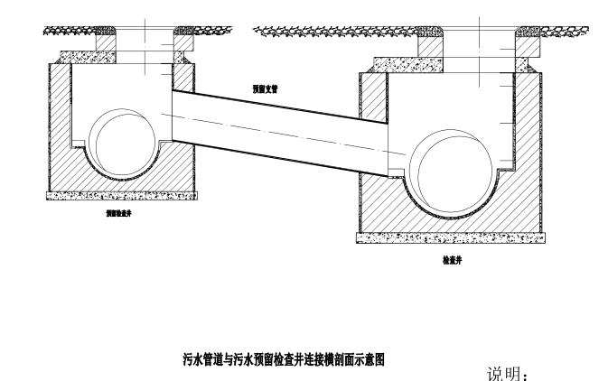 本工程按照甲方要求,考虑每户设置一个 2 方小型玻璃钢化粪池(不在本次设计范围内),本工程不再设置集中化粪池。污水管道均采用 II 级钢筋混凝土管。钢筋混凝土管管道基础采用 120°混凝土基础。接口采用承插式橡胶圈接口连接。