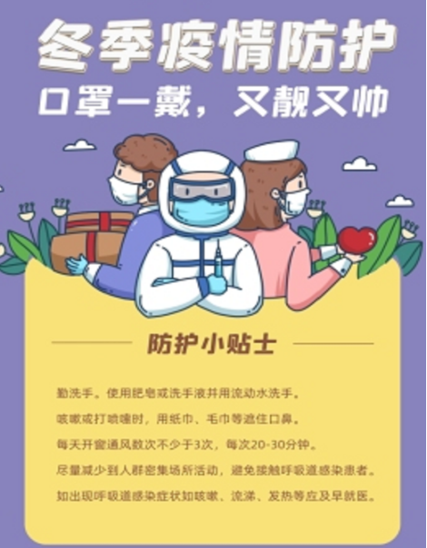 秋冬季是呼吸道传染病的流行季节,必须切实降低流感对疫情防控的影响。要围绕慎终如始抓好常态化疫情防控,大力倡导“每个人是自己健康第一责任人”的理念,我们每个人都应该树立正确健康观,更多了解和掌握疫情防控相关知识,践行健康文明生活方式,有效地做好防疫工作。